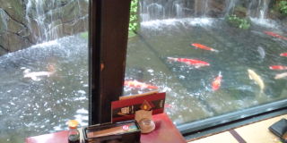 鯉の泳ぐ〜池を横目にテーブル席に着座。